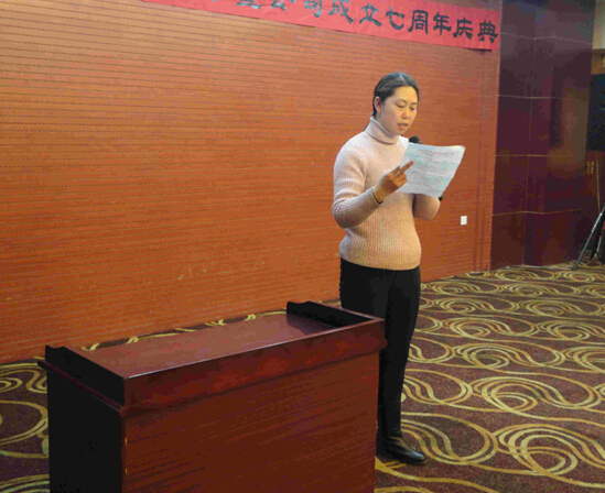 先進(jìn)員工代表劉香鳳代表全體員工發(fā)表工作感想。